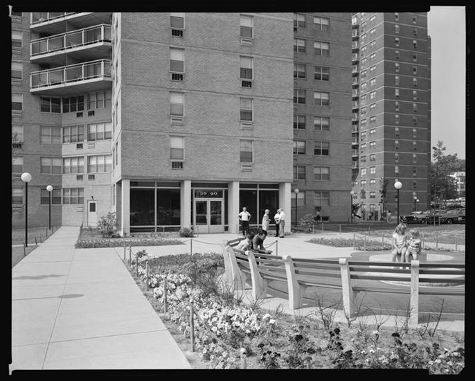 Queens Boulevard between 59th and 61st Street. Big Six co-op apartment buildings, general view from S.W., rear and side.