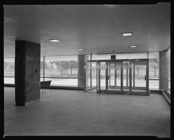 100 Park Avenue. Apartments, main entrance interior, bronze doors to lobby.