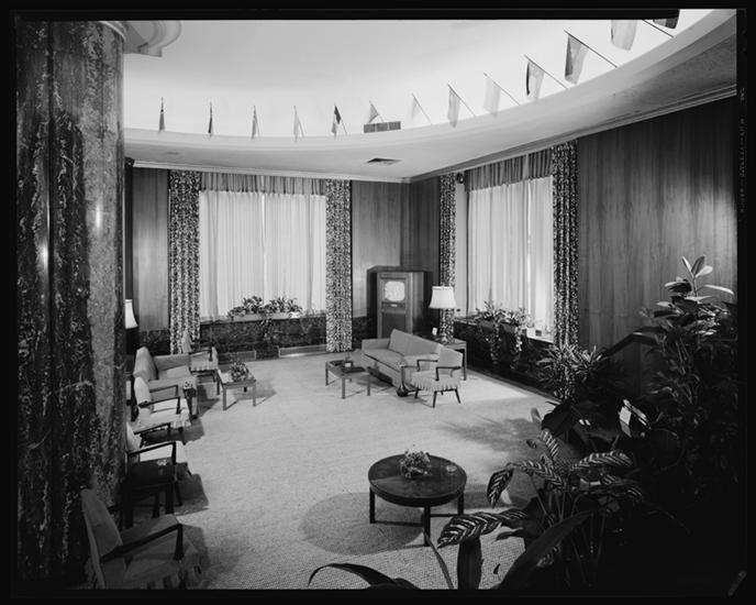 385 Madison Avenue. The Manhattan Savings Bank, interior of front lounge, looking in from window.