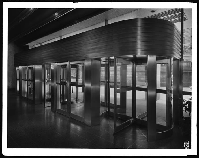 101 Park Avenue. Building, new entrance on East 41st Street, interior of doors from lobby.