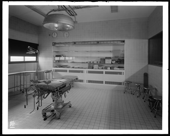 Shore Road Hospital, view of new operating room with wall cabinet.