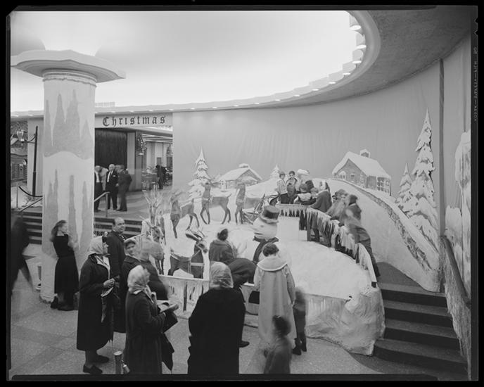 47th Street. Manhattan Savings Bank, Christmas show, ice skaters in.