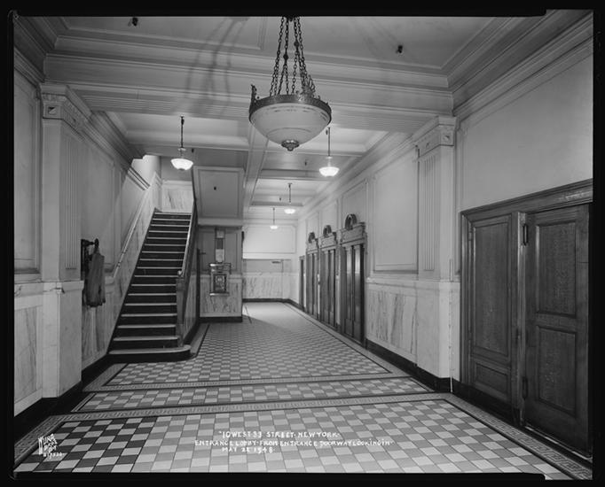 10 West 33rd Street. Entrance lobby prior to alterations, looking N.E. from rear towards the elevators, east side of lobby.