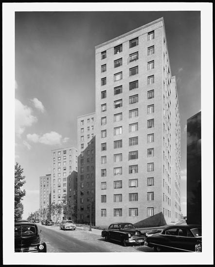 Queens Boulevard between 59th and 61st Street. Big Six co-op apartment buildings, general view from S.W., rear and side.
