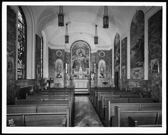 415 West 51st Street. St. Clare's Hospital, chapel, detail of corner near entrance.