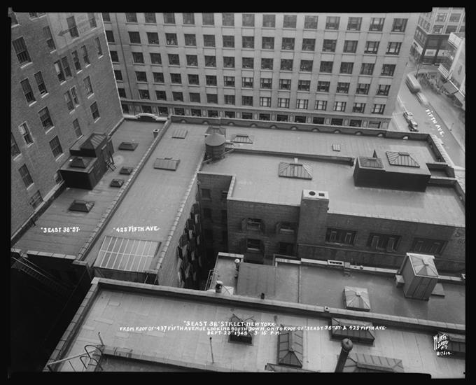 Birds eye view looking south on Fifth Avenue from 38th Street roof of Lord and Taylor