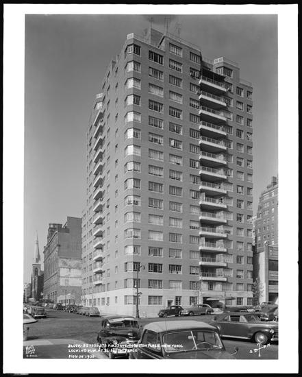 55th Street at the S.E. corner of Park Avenue. Apartment house.