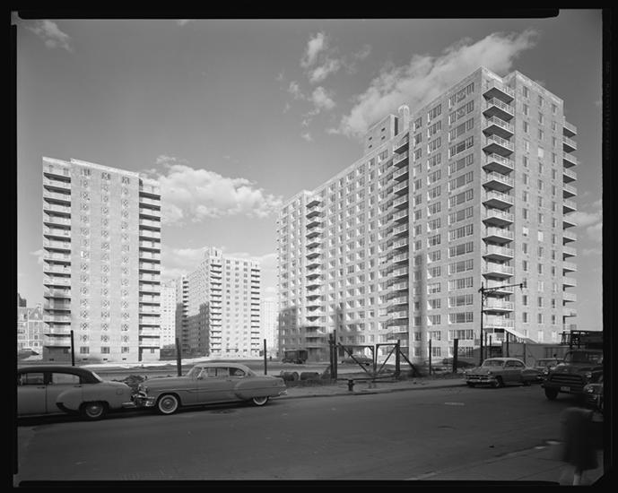Lincoln Towers, aerial view looking N.E. from near 66th Street and Freedom Avenue.