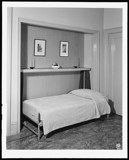 19 West 44th Street. Bed with curtain enclosure, shut, vertical.