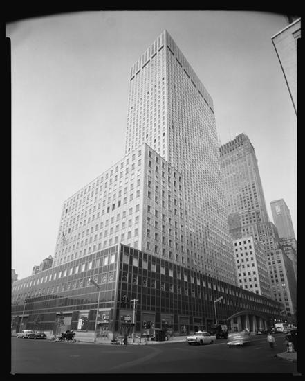 150 East 42nd Street between Lexington and 3rd Avenue. Socony-Mobil Building, general view from N.E. showing 3rd Avenue and 42nd Street.