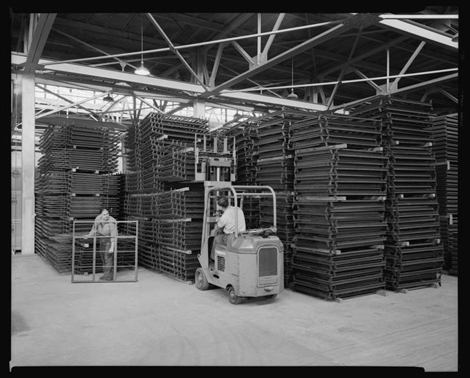 Northern Boulevard. Truscon Steel Company warehouse and office building, stock of windows tagged and ready for shipping.