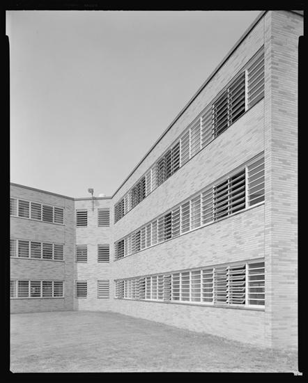 Workhouse for Men, reception center, view along one wing, north end, maximum detention SN-1 type Bayley windows.
