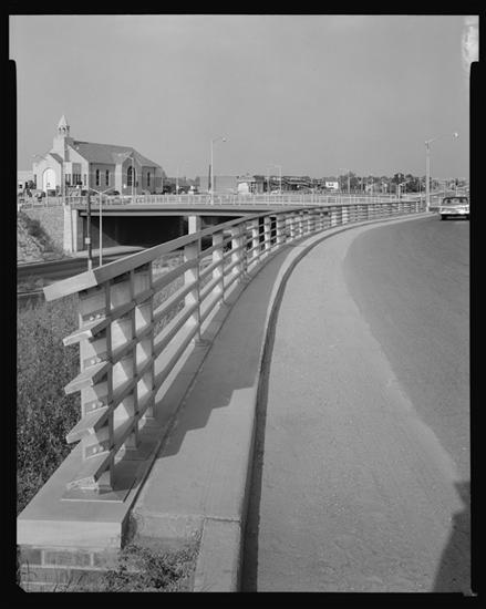 Long Island Expressway and bridges, looking across bridge at Bell Boulevard to north [to show aluminum railings].