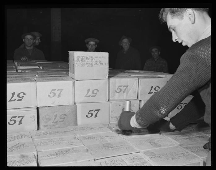Shipment of baby foods going to Germany from Pier 6, Bush Terminal Warehouse.