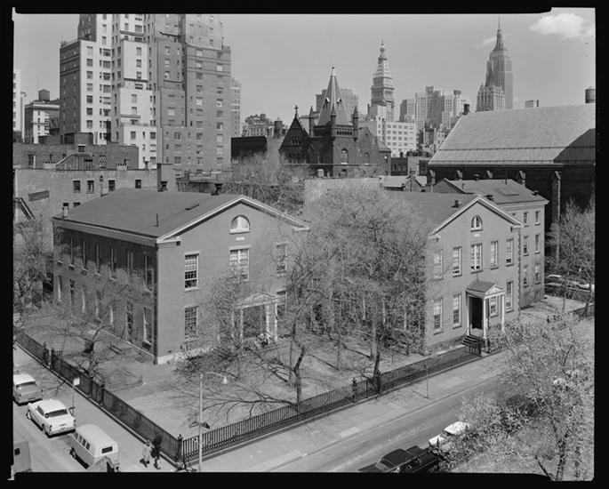 East 16th Street and Rutherford Place. Friends Seminary. General exterior view of school and meeting house