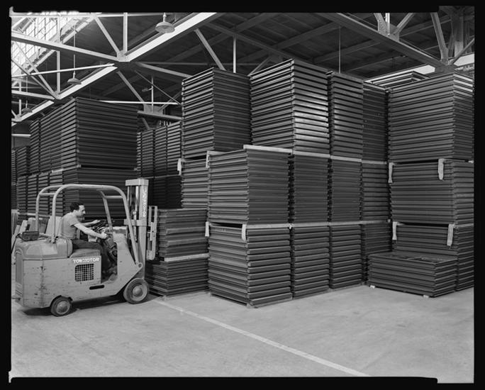 Northern Boulevard. Truscon Steel Company warehouse and office building, stock of windows tagged and ready for shipping.