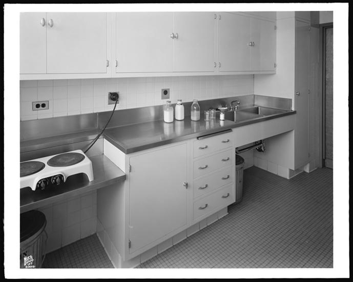 Veterans Hospital, interiors with cabinets, west sixth floor.