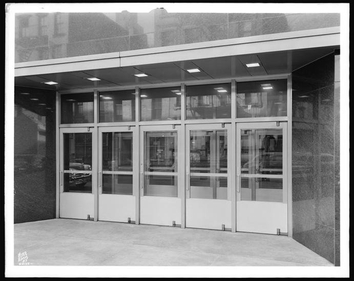 101 Park Avenue. Building, new entrance on East 41st Street, exterior detail of doors.