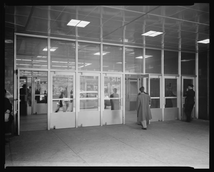 41st Street. Port Authority Bus Terminal, steel doors, north entrance.