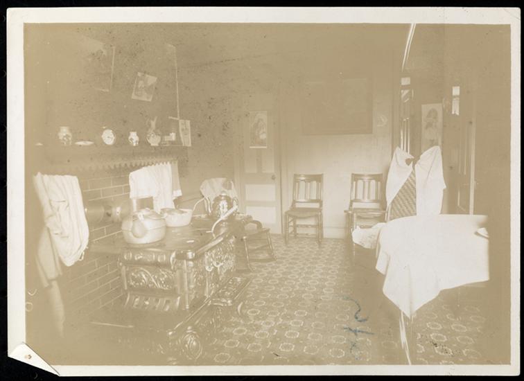 Kitchen in Mr. White's Riverside Tenements, Brooklyn.