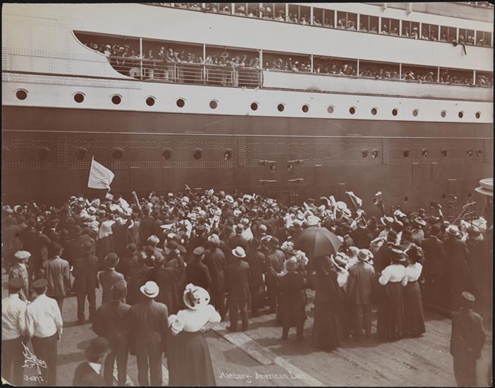 Crowds on the pier and aboard the S.S. "Kaiserin Auguste Victoria".