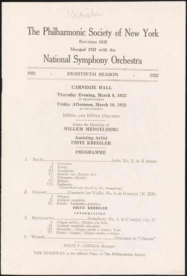 The Philharmonic Society of New York Eightieth Season. 1601st Concert
