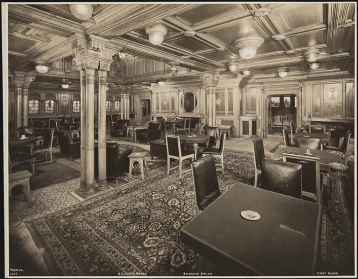 Lloyd Sabaudo Line, S.S. "Conte Rosso", Col Serrati, Interior, Smoking Salon.