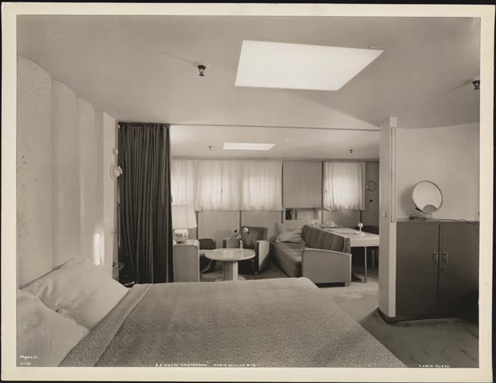 S.S. "Nieuw Amsterdam", 5th Street, Hoboken, N.J., Cabin Class, Cabin de Luxe #49, Bedroom Section.