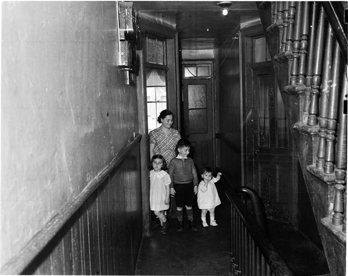 Children at the Top of Shabby Staircase