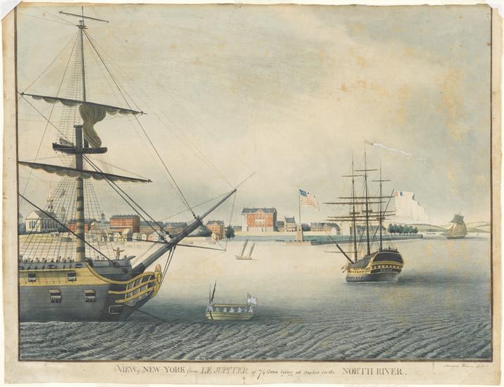 A South East Prospect of the City of New York in 1756-7 with the French Prizes at Anchor