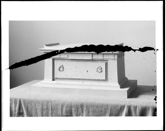 Watercolor of circular mausoleum. Drawn by Geiges.