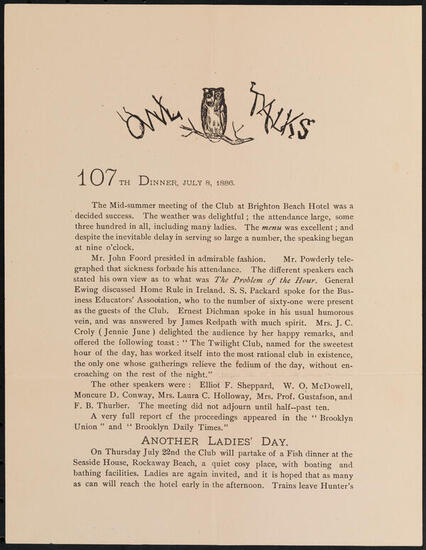 Hundred-and-seventh Dinner of Ye Twilight Club