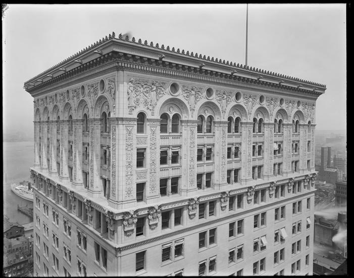 39 Broadway. Harriman Building, detail of upper part [taken from] North American Co. Building.