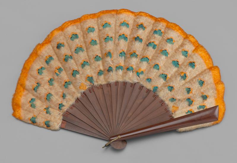 Folding feathered fan of clipped ostrich feathers
