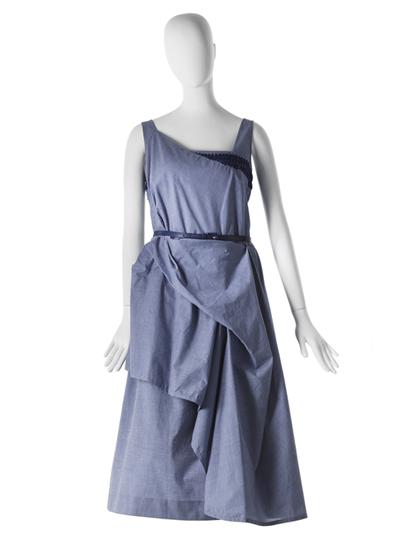 Evening ensemble: Lace dress and jacket, and floral bustle