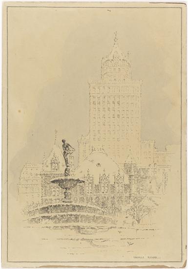 [Pulitzer Fountain, with W.K. Vanderbilt's mansion and Heckscher Building in the background]