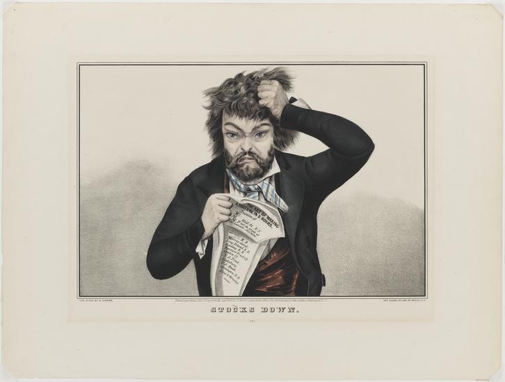 An Exciting Day in the Board of Brokers, "On the Rise". Performance of the Whole of the Stock Company, 1862.