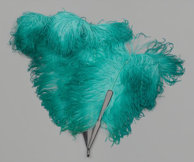 Lyre-shaped feather fan of green ostrich