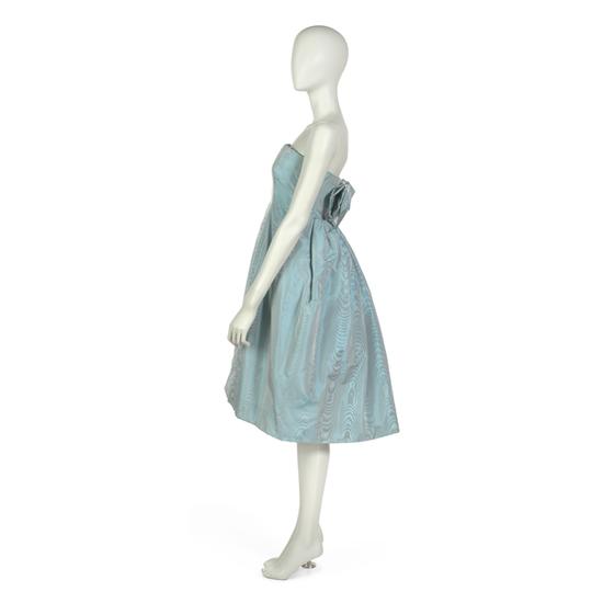 Evening ensemble comprising evening dress and coat in ice blue silk gazar