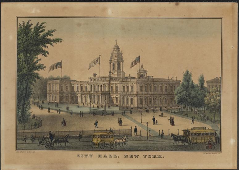 View of the Park Fountain & City Hall, N.Y. 1851.