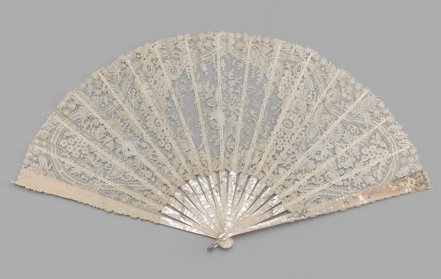 Folding fan of cream lace and net leaf