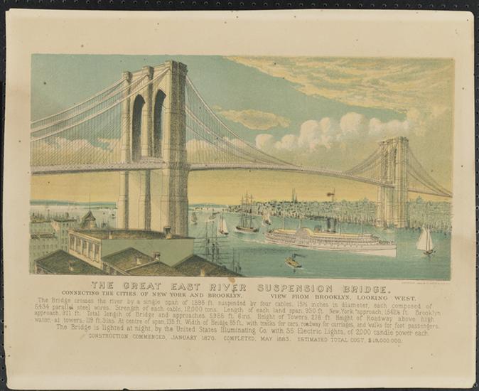 [Looking southwest over the East River to the Brooklyn Bridge and the Lower Manhattan skyline.]
