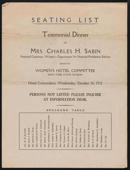[Testimonial dinner to Mrs. Charles H. Sabin.]