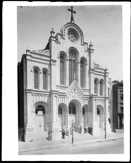 43rd Street between 3rd and Lexington Avenue. St. Agnes Roman Catholic Church, view of scaffold.