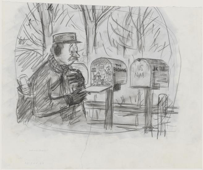 [Policeman discovering men playing chess in the snow.]