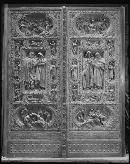 [Central bronze doors of Old Trinity Church.]