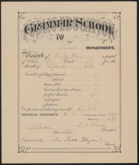 [Testimonial to regular and punctual attendance, correct deportment and diligent attention to study.]
