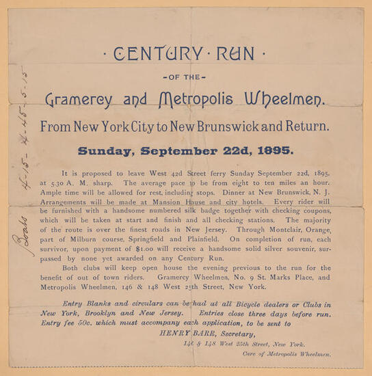 Road Map Arranged for the Evening Run of the NYAC Wheelmen