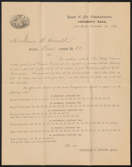 An Ordinance for the Better Regulation of the Firemen of the City of New York
