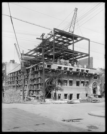 183rd Street and Washington Avenue, NW corner. Parochial School, construction [during construction].